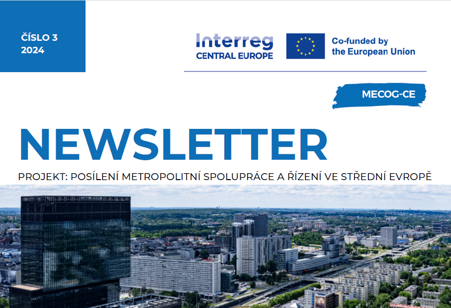 Přinášíme Vám další zajímavé čtení – Newsletter – už třetí, mezinárodního projektu MECOG-CE. Podstatou projektu je posilování metropolitní spolupráce. V newsletteru najdete mimo jiné zajímavé informace, analýzu 47 příkladů dobré praxe pro efektivní řízení. Newsletter najdete zde